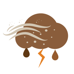 rain showers with thunderstorms, dust at early morning