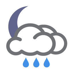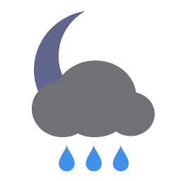 rain showers at evening, light fog from midnight till dawn