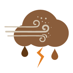 wind, rain showers with thunderstorms, dust at times